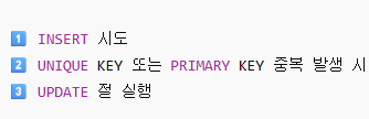 정확하게 말하자면, 중복키 충돌이 발생할 때 INSERT가 아니라 UPDATE문으로 전환되어 데이터 중복없이 인서트할 수 있도록한다.